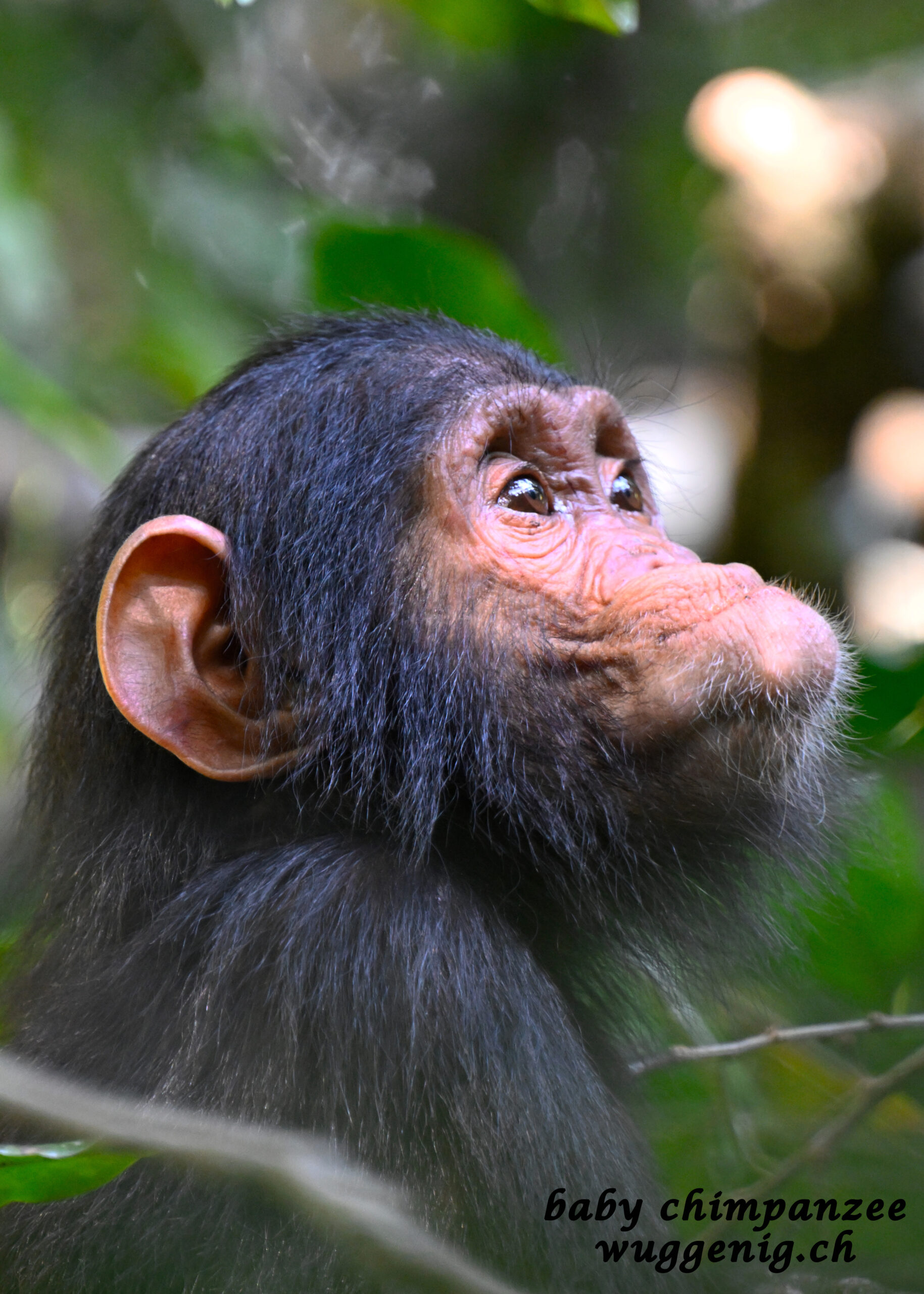 Das Bild zeigt einen einzelnen Schimpansen inmitten des üppigen Regenwalds Ugandas. Diese Begegnung war ein echtes Highlight deiner Reise – intensiv, überraschend und zutiefst beeindruckend. Der Moment, eingefangen in diesem Foto, erzählt von Respekt gegenüber der Natur und einem Erlebnis, das sich tief ins Gedächtnis eingebrannt hat.